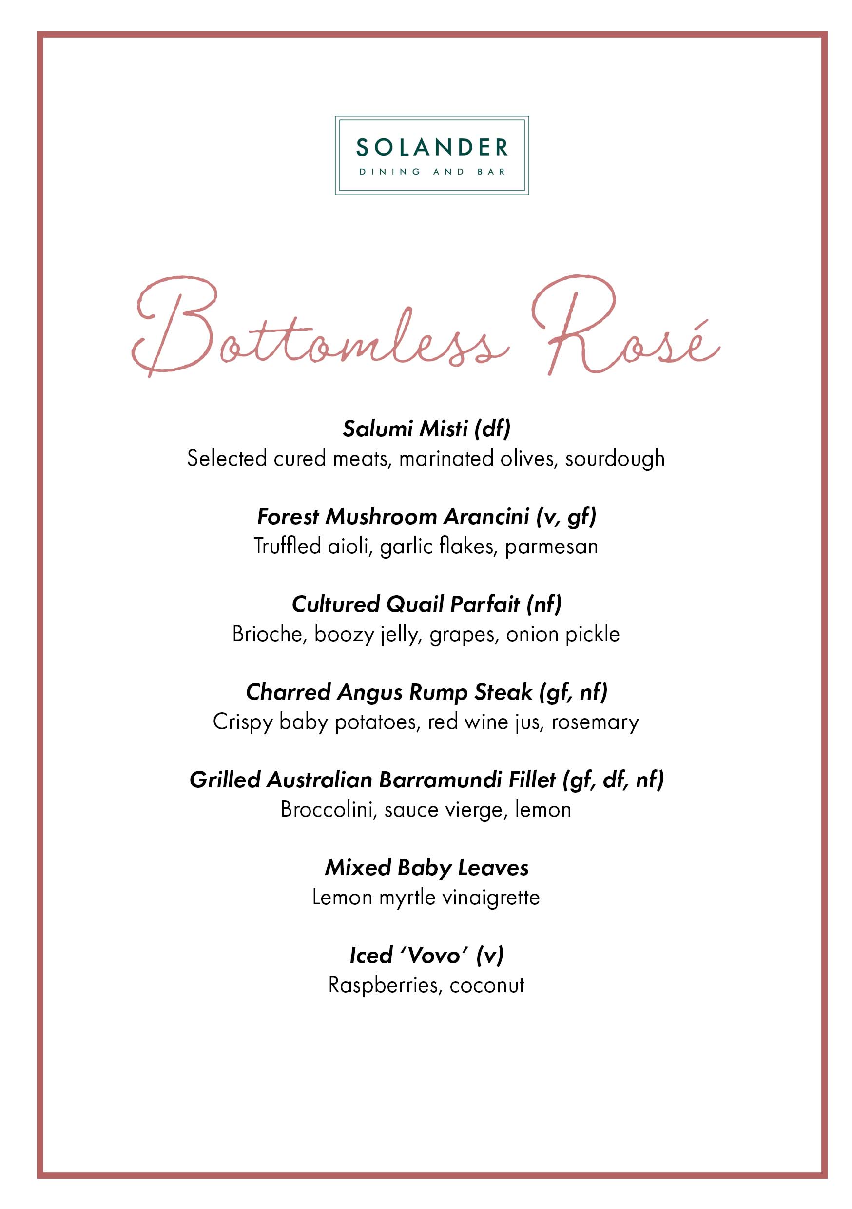 Lunch MenuDinner MenuSet Menu (for groups 10 or more)Bottomless Rose Menu